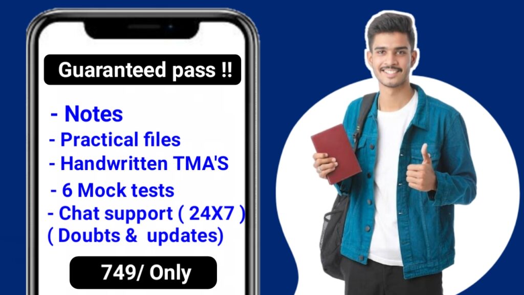 अपने Exam की पूरी तैयरी के लिऐ आप हमारे इस Batch को join कर सकते है। ☞ All subjects notes / important questions answers – इसमें आपको सभी subjects के notes और previous year पूछे गए सभी question answer की pdf दी जाएगी☞ Solved Handwritten TMA’S – इसमें आपको सभी subjects के Handwritten solved TMA’S दिए जायेंगे आपको बनाने की जरूरत नहीं होगी । हम बनाकर देंगे☞ Solved Practical files – इसमें आपको सभी subjects की solved Practical files भी दी जाएगी☞ 6 Mock tests – इसमें आपका monthly सभी subjects का test भी लिया जायेगा ( हमारी website per web camera के सामने )☞ Chat support ( 24X7 ) – join होने के साथ ही अपने सभी doubts हमारे इस whatsapp helpline number पर पूछ सकते हैं। और साथ ही यहां से आपको exam तक सारी updates भी दी जाएगी ।